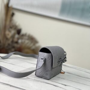 Gray embossed soft Monogram Taurillon leather complements classic elements like a Steamer style chain. Comes with an adjustable shoulder strap for easy carrying. The zippered compartment offers plenty of storage space, and the front pocket flap and magnetic closure keep your belongings secure.