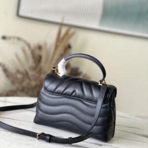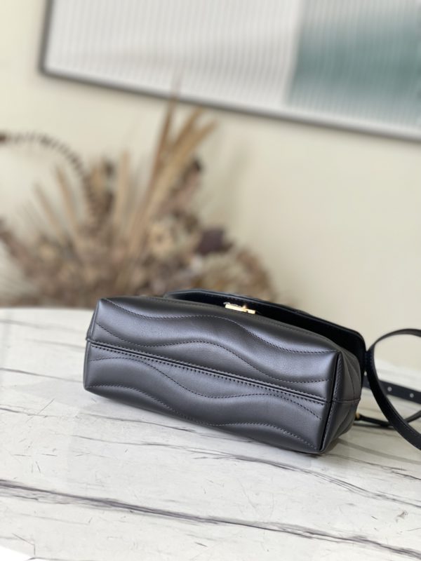 Black This Hold Me handbag is a new product of its iconic New Wave quilted leather series, with exquisite shape and comfortable carrying. The smooth silhouette is finished with an elegant metal buckle. A detachable, adjustable leather strap enhances the style of this bag.