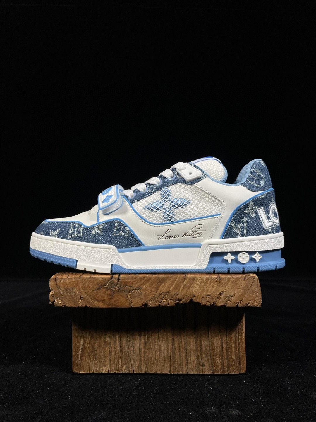 Louis Vuitton Trainer Velcro Fastening Blue and White Low-Top Casual Shoes Sneakers Men’s and Women’s Footwear 1A9ZI6