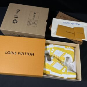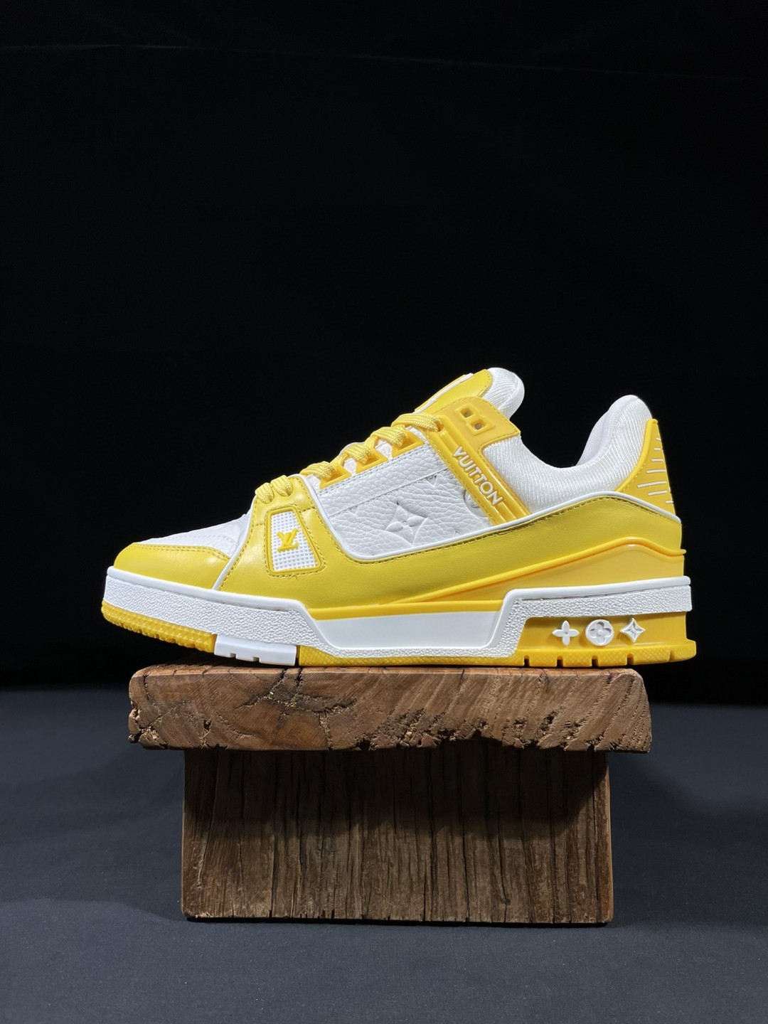 Louis Vuitton Trainer White and Yellow Low-Top Casual Shoes, Skate Shoes, Trainers for Men and Women