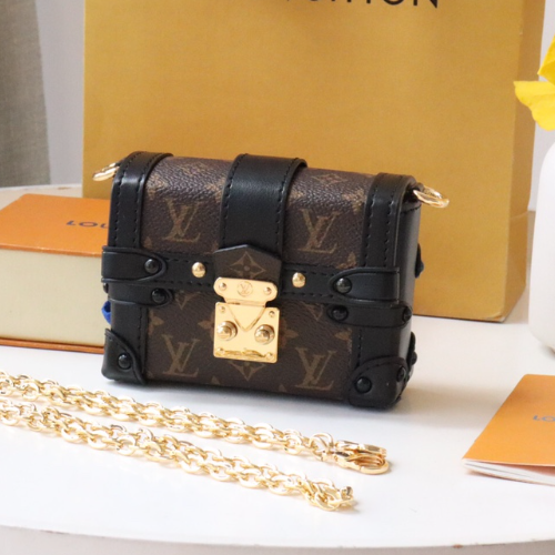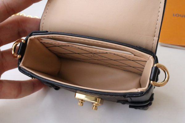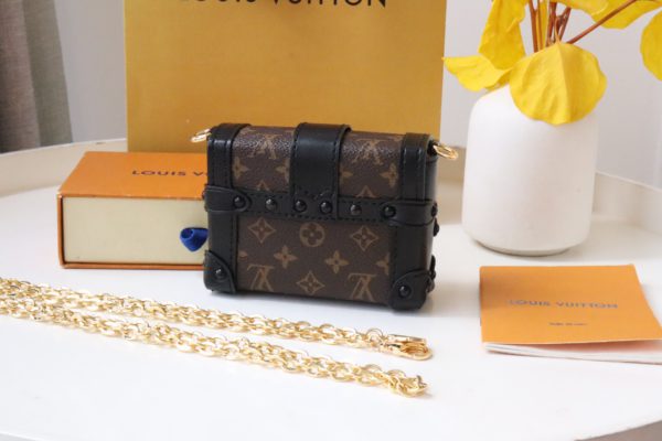 Incorporating many iconic elements, it pays tribute to Louis Vuitton’s traditional luggage design: Monogram pattern, metal studs, S-lock clasp and Malletage printed lining.