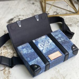 Blue men’s messenger bag series TRUNK shoulder bag 2021 autumn and winter series Trunk shoulder bag is made of brand-new Damier Salt canvas, using Louis Vuitton denim’s old-fashioned technology to give classic coated canvas a new trendy texture . The compact silhouette has an adjustable shoulder strap so you can wear it cross-body or worn around the waist.