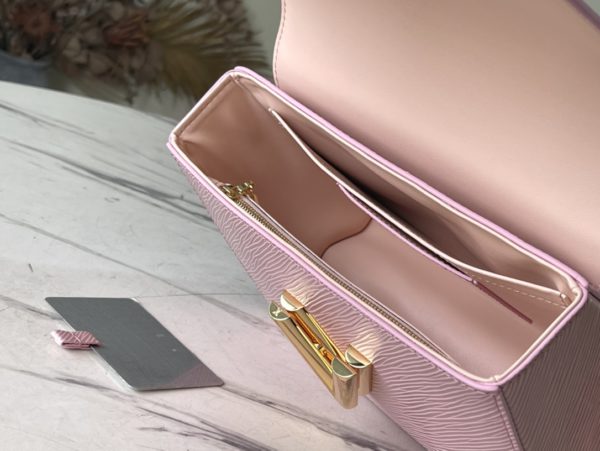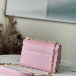 This Twist medium handbag is made of iconic Epi grain leather, and declares summer fashion in eye-catching new colors. Leather lining creates color contrast, and the sliding chain shoulder strap has leather shoulder pads for comfortable shoulder and cross-body wear.