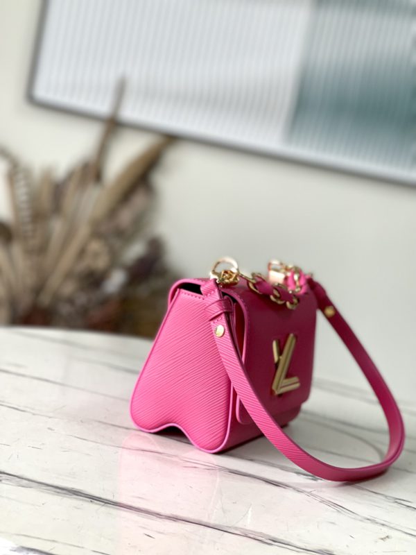 This Twist small handbag in Epi grained leather presents an unassuming and feminine color style, and the detachable leather braided chain highlights the fashion sense, with a Twist twist lock and detachable and adjustable shoulder strap, carrying it on the back There are many ways.