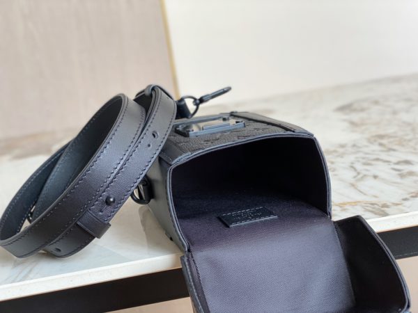Black full leather men’s mobile phone bag series VERTICAL TRUNK mini handbag Vertical Trunk mini handbag adheres to the design concept rooted in the depths of Louis Vuitton, using Monogram Eclipse canvas to create a square configuration, with rivets and reinforcements The corners together highlight the brand’s traditional hard case elements. The magnetic flap secures storage, and the detachable and adjustable shoulder strap makes it easy to carry over the shoulder or across the body.