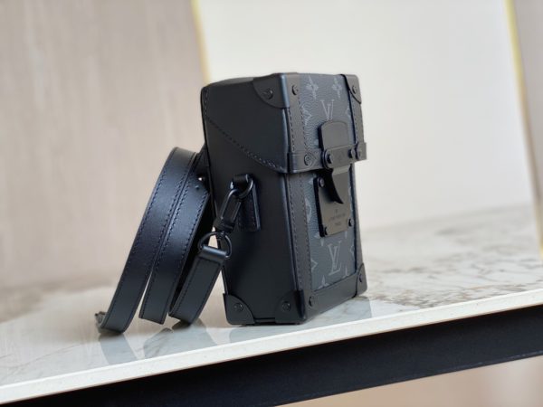 black flower men’s bag mobile phone bag series VERTICAL TRUNK mini handbag Vertical Trunk mini handbag adheres to the design concept rooted in the depths of Louis Vuitton, using Monogram Eclipse canvas to create a square configuration, with rivets and reinforcement bags The corners highlight the brand’s traditional hard case elements. The magnetic flap secures storage, and the detachable and adjustable shoulder strap makes it easy to carry over the shoulder or across the body.
