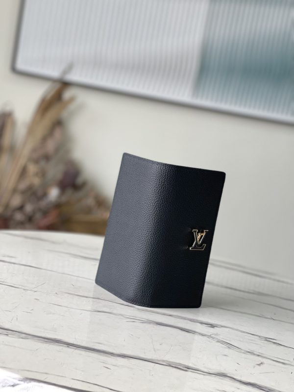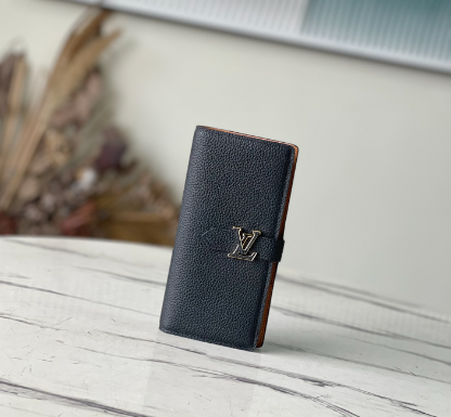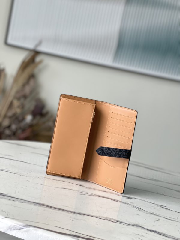 This LV Vertical Wallet is made of soft grained Taurillon leather with lettering for the sliding closure, inspired by the design of Capucines handbags. The pop-up contrast lining features a card slot, zipped coin pocket, and large V-shaped compartment for bills and receipts.