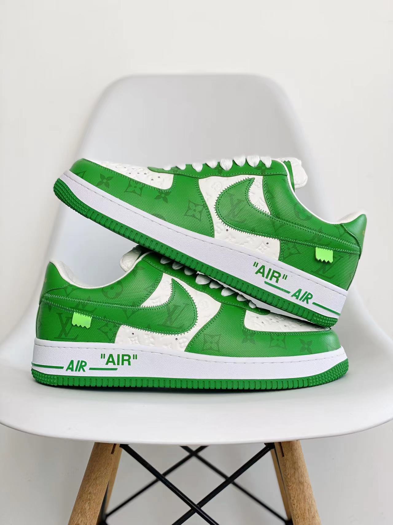 Original Box Version with Accessories Louis Vuitton x Nike Air Force 1 Low Green Low-Top Cowhide Leather Casual Shoes Sneakers Skate Shoes Men’s Shoes Women’s Shoes 1A9V9V