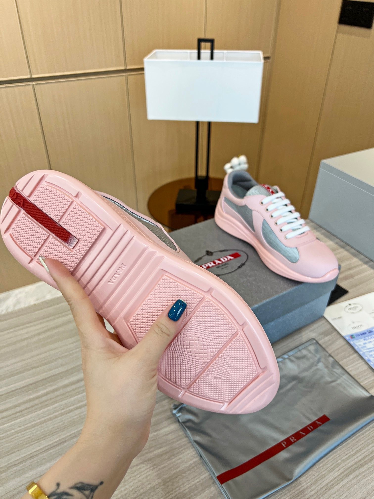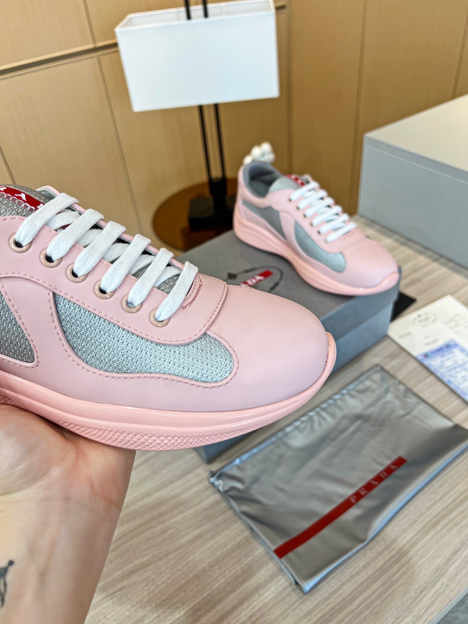 Prada America’s Cup Sneakers in Pink Rubber and Bike Fabric