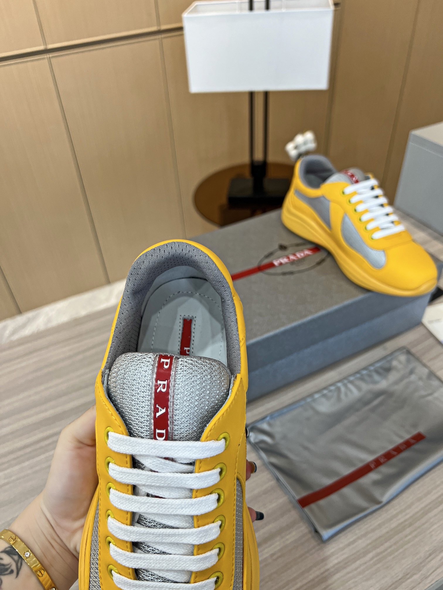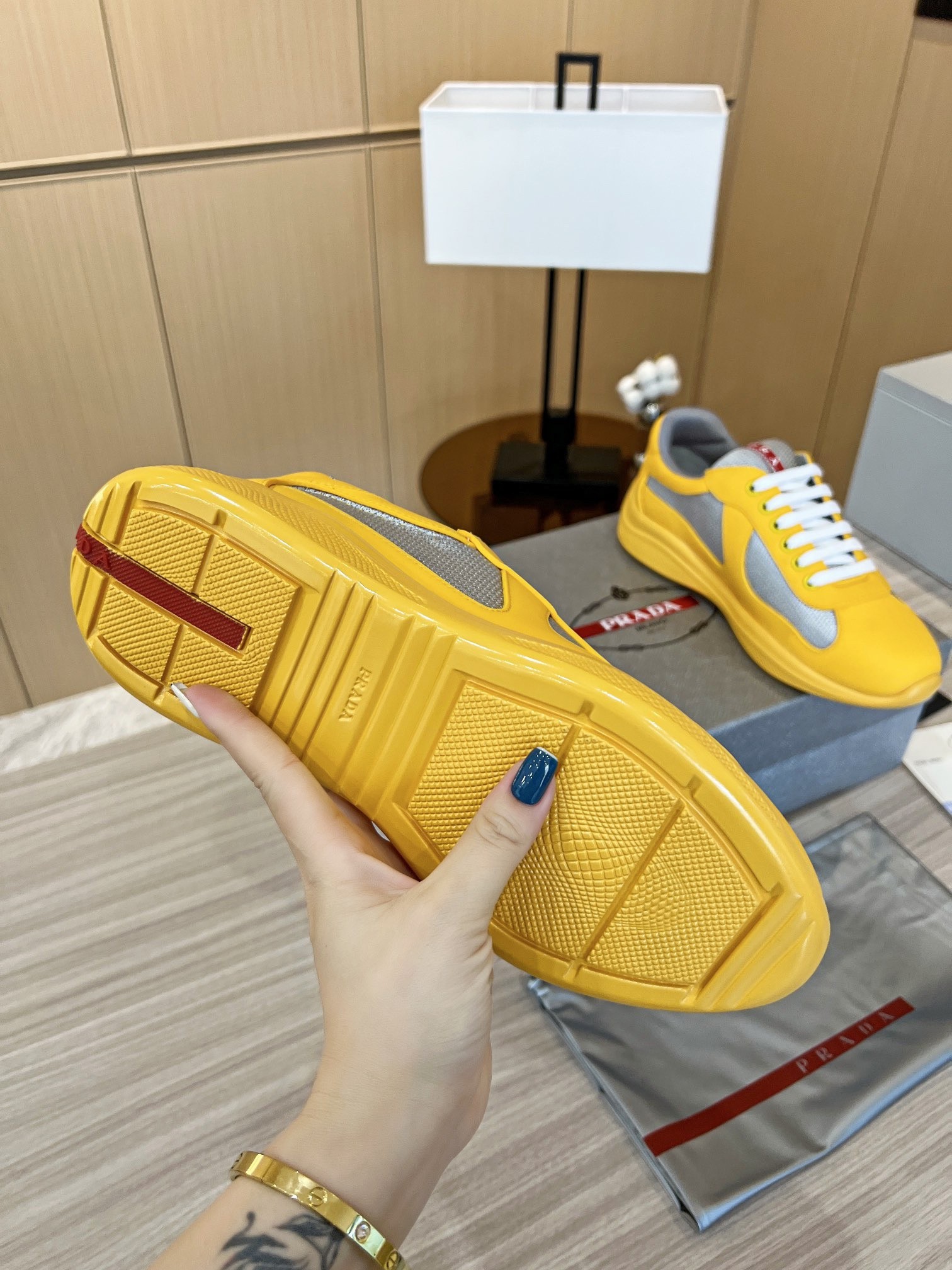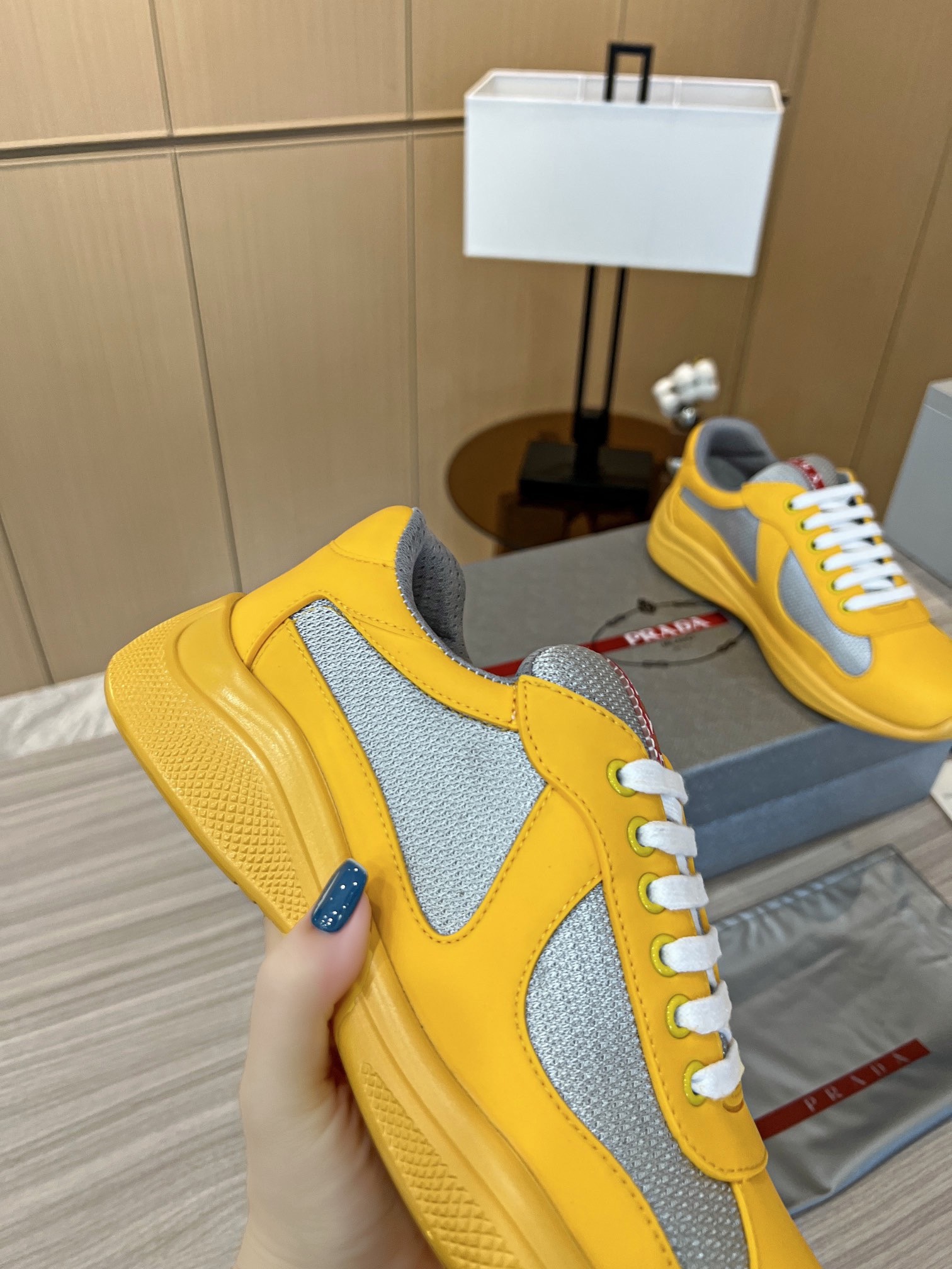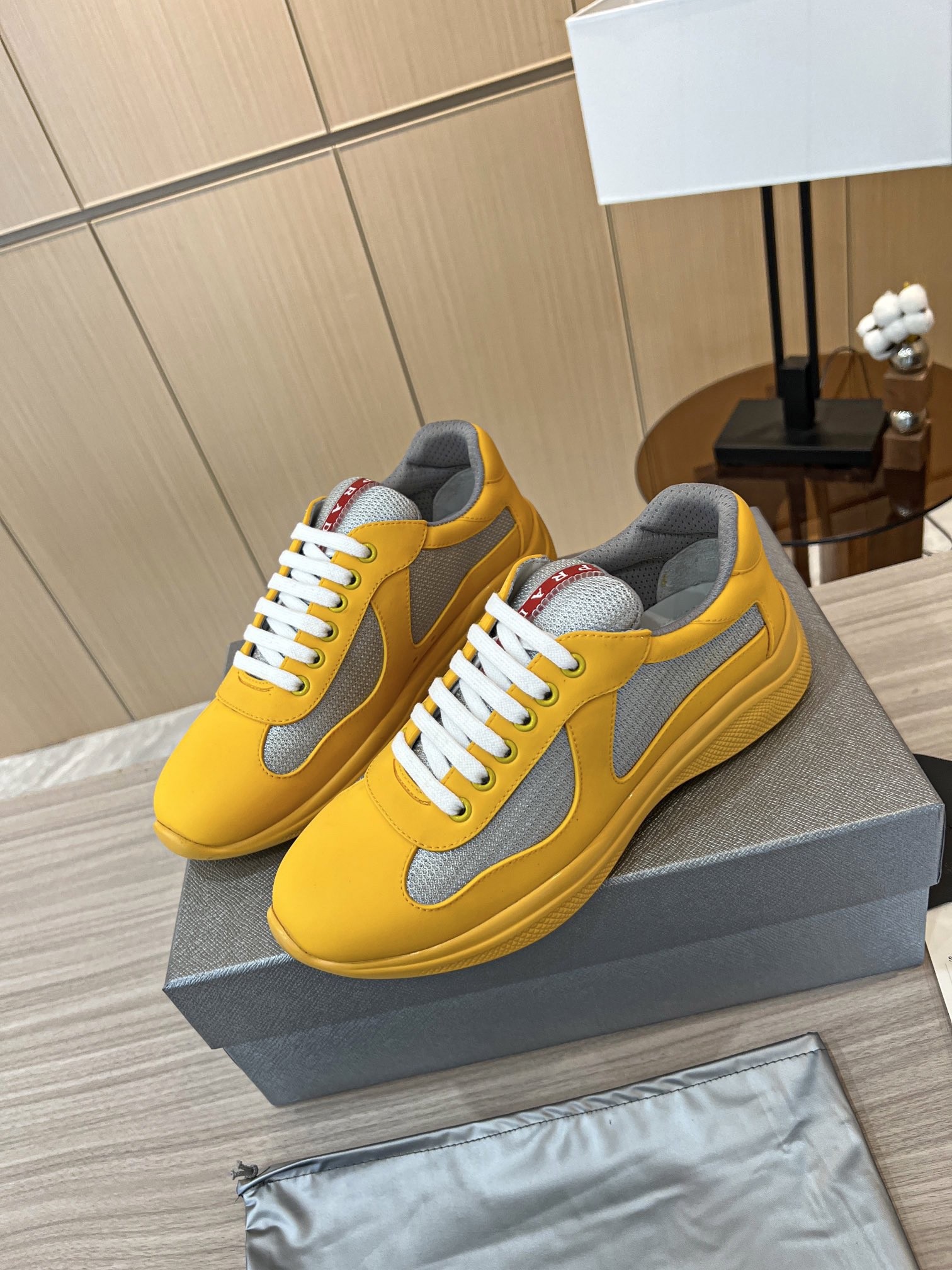 Prada America’s Cup Sneakers in Yellow Rubber and Bike Fabric