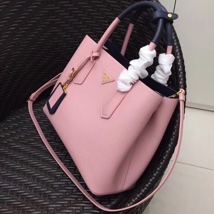 Prada Bicolor Double Medium Pink Saffiano Bag