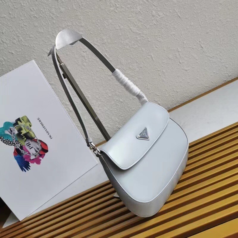 Prada Cleo Flap Bag In Cornflower Blue Brushed Leather