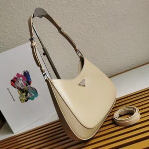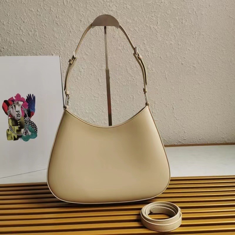 Prada Cleo Shoulder Large Bag In Beige Brushed Leather