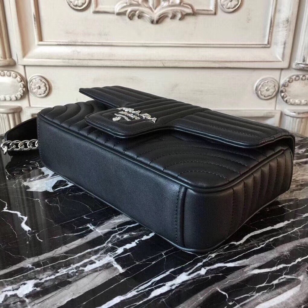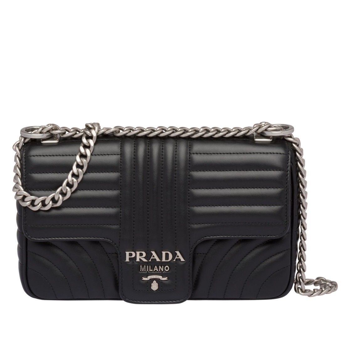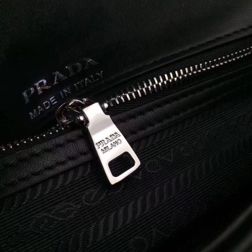 Prada Diagramme Flap Bag In Black Calfskin