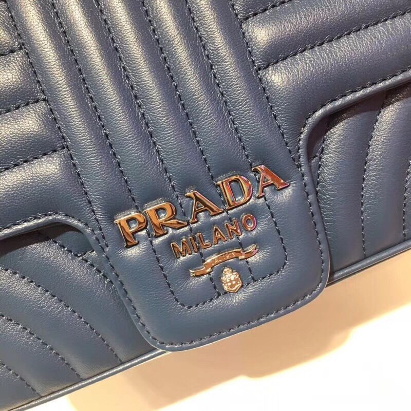 Prada Diagramme Flap Bag In Blue Calfskin