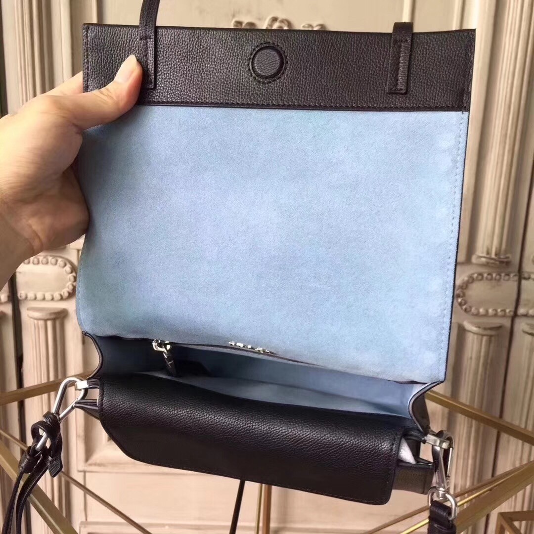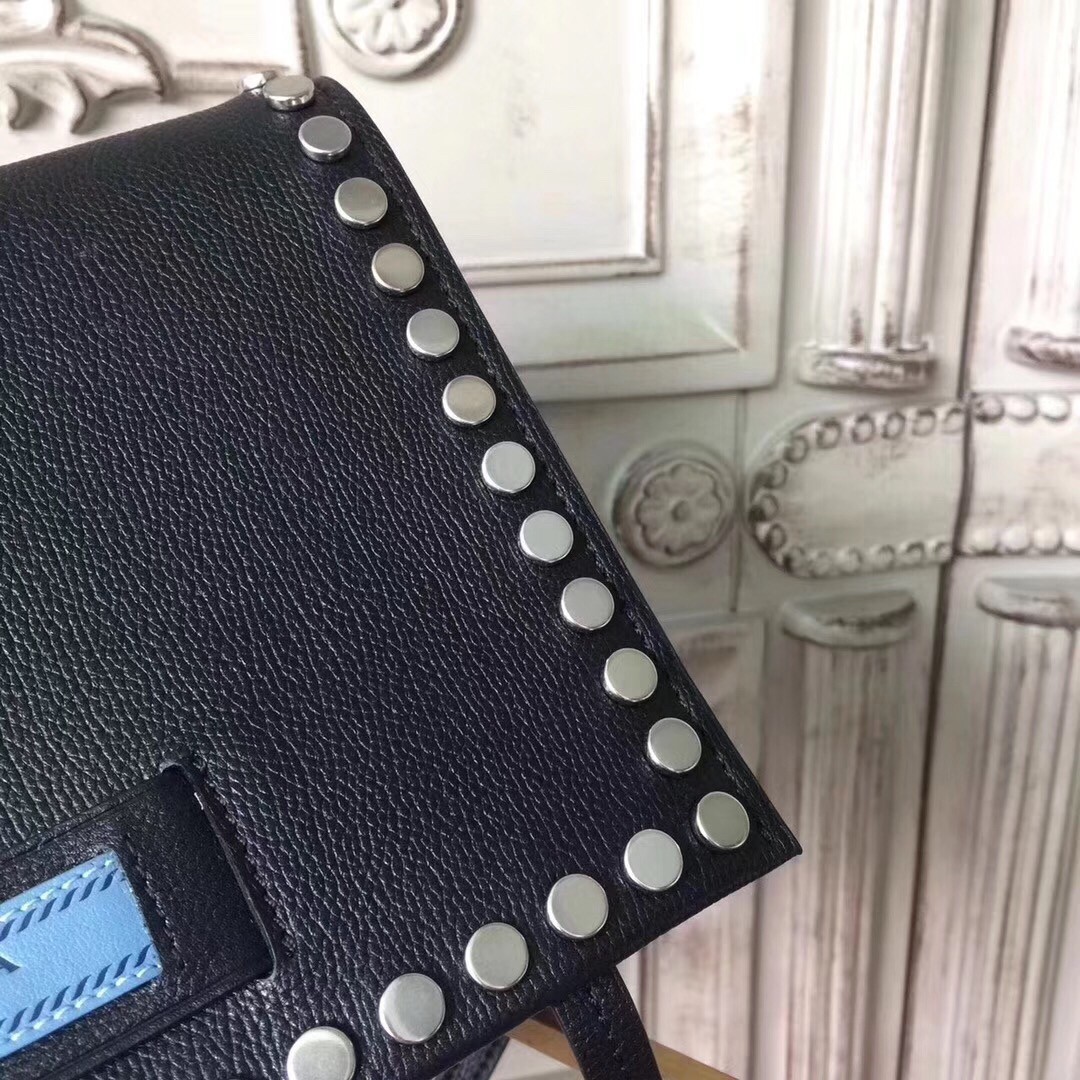 Prada Etiquette Bag In Black Calfskin With Metal Stud Trim