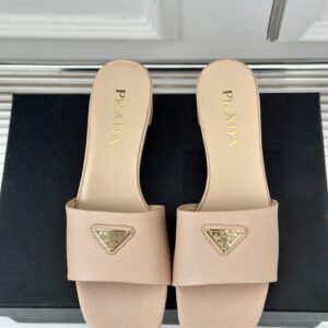 Prada Heeled Sandals 35mm in Beige Saffiano Leather