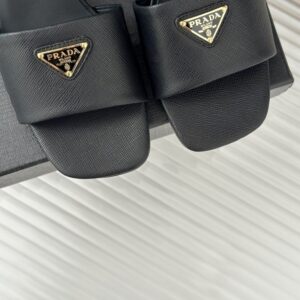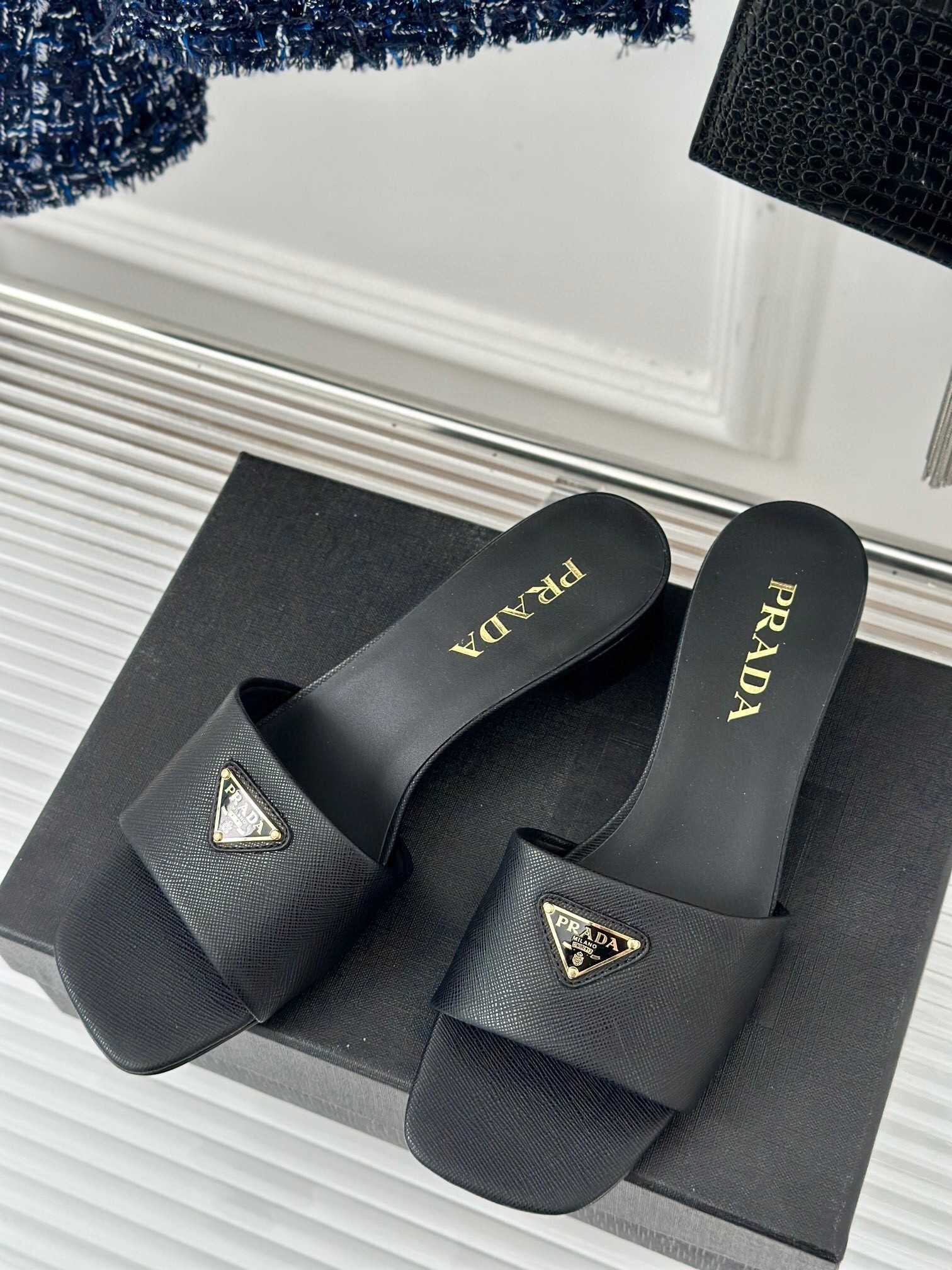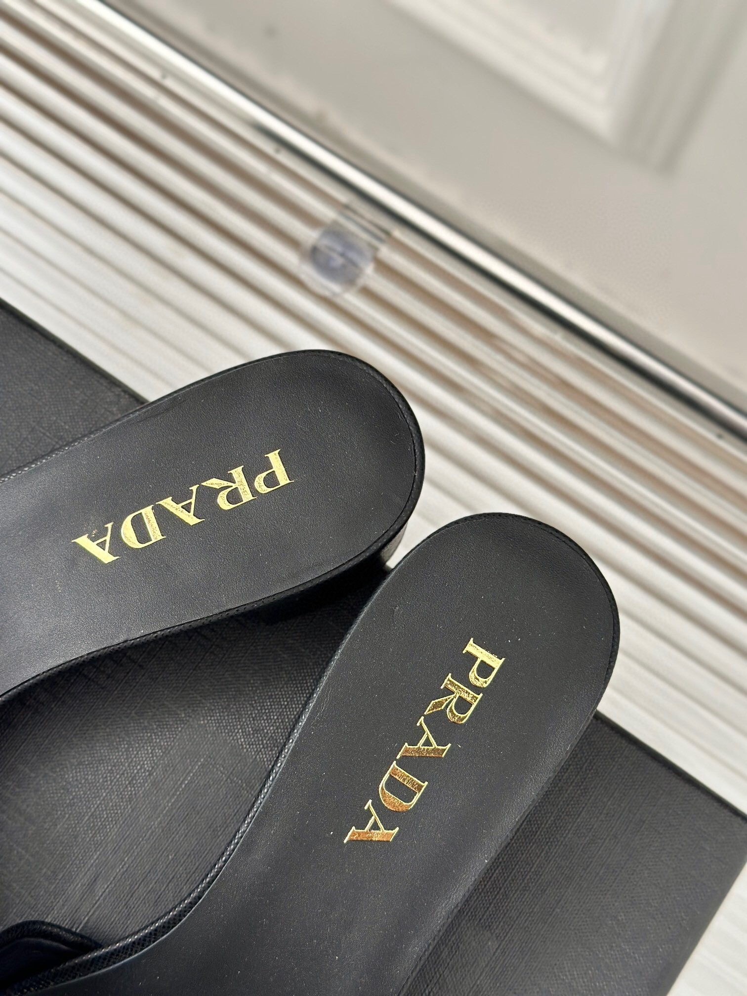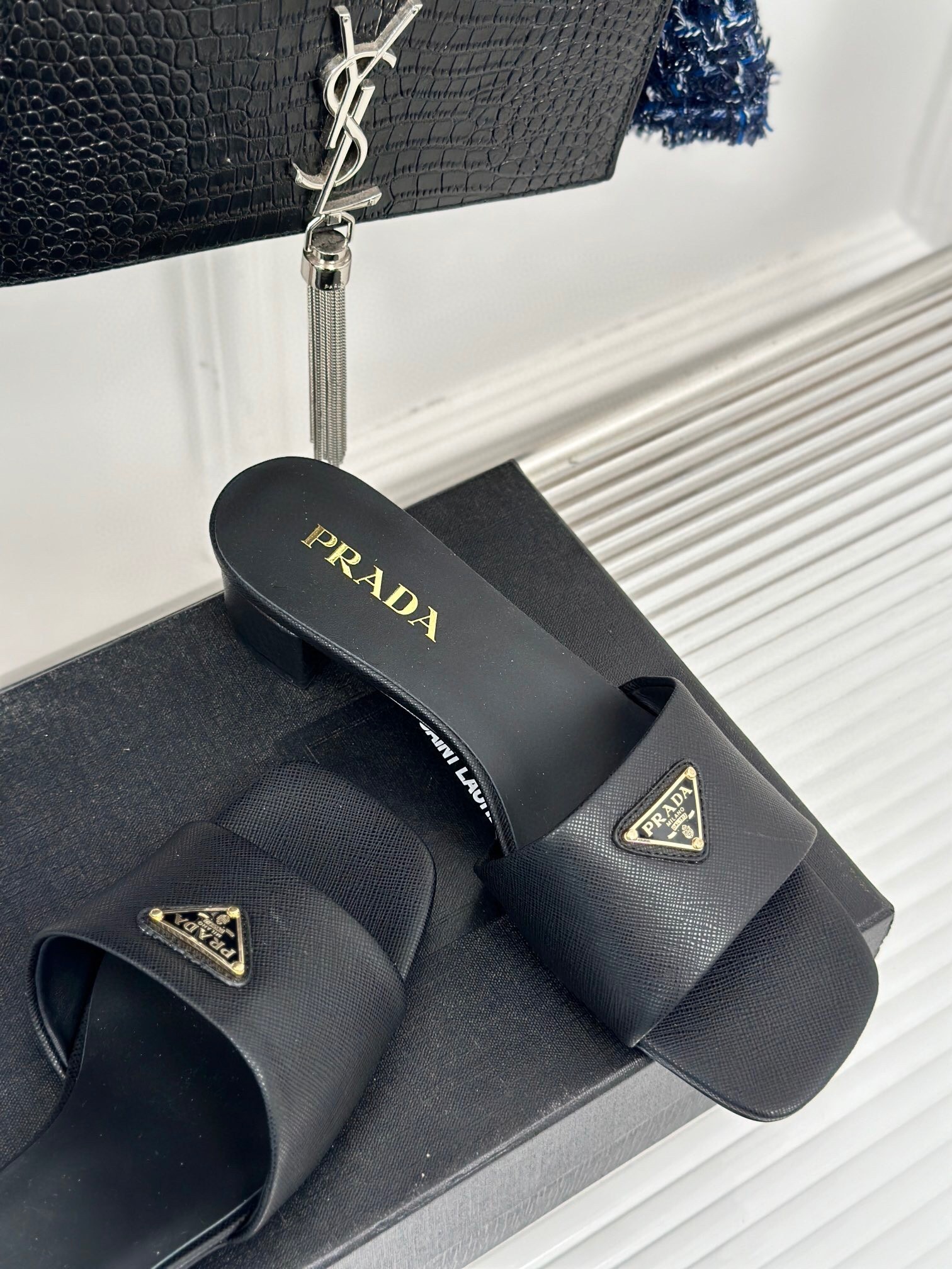 Prada Heeled Sandals 35mm in Black Saffiano Leather