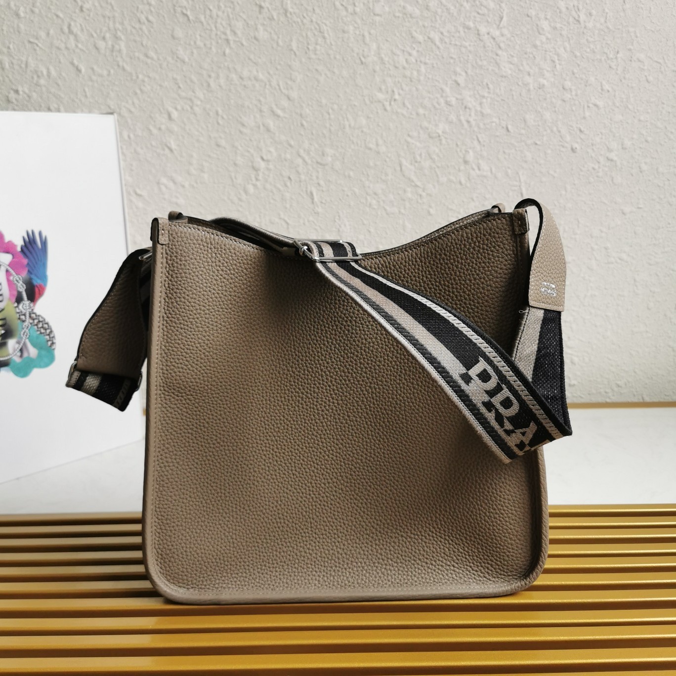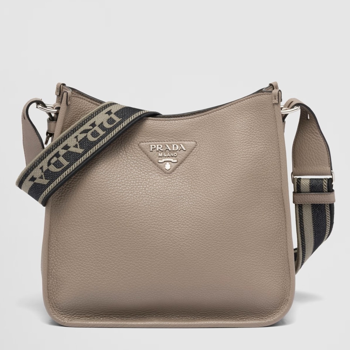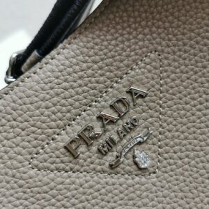 Prada Hobo Bag in Grey Grained Leather