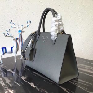 Prada Large Monochrome Bag In Grey Saffiano Leather