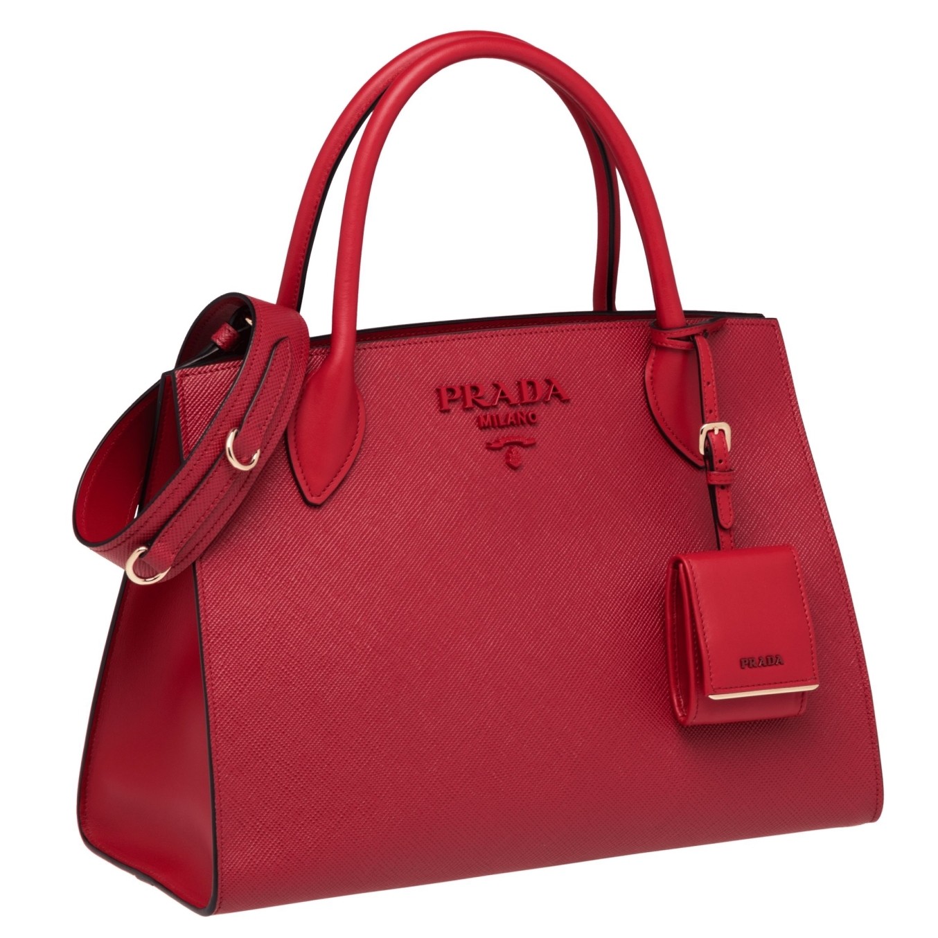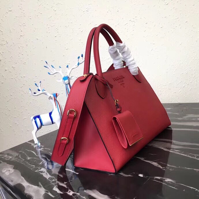 Prada Large Monochrome Bag In Red Saffiano Leather