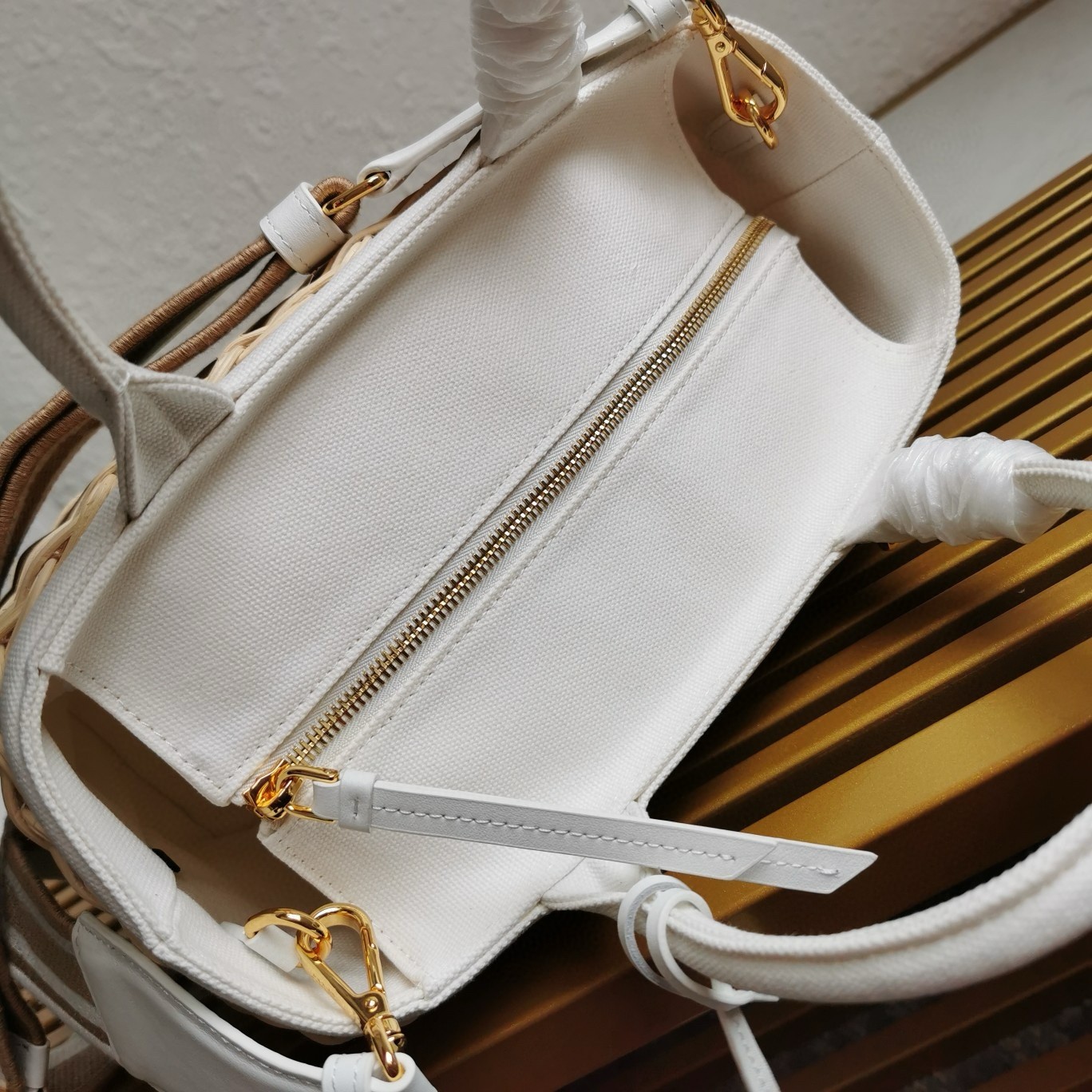 – Linen blend interior with two pockets, one with zipper