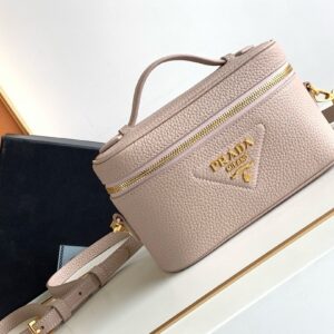 Prada Mini Vanity Bag in Light Pink Grained Leather