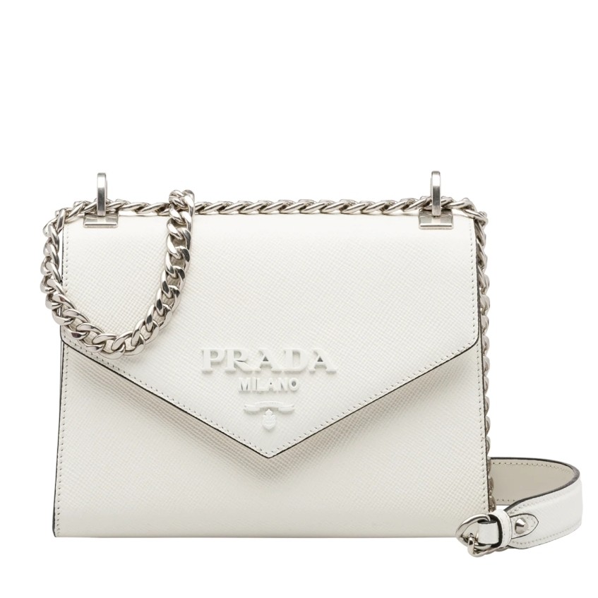 Prada Monochrome Flap Bag In White Saffiano Leather