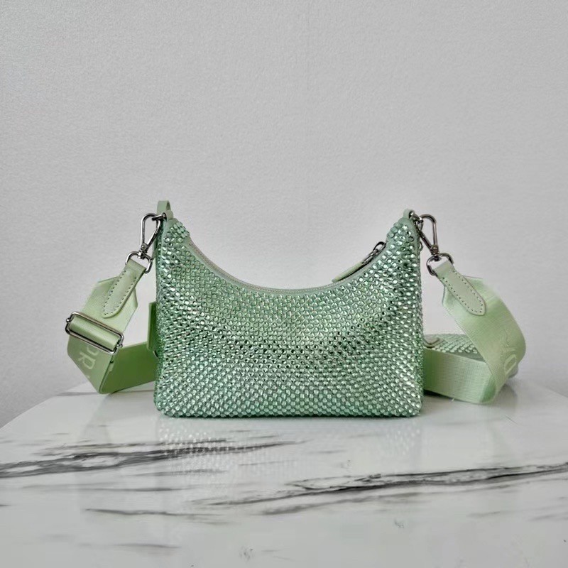 Prada Re-Edition 2005 Bag In Aqua Satin with Crystals