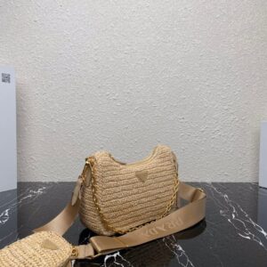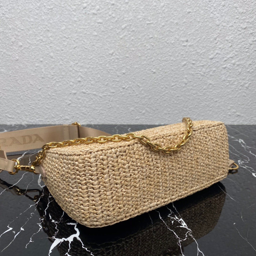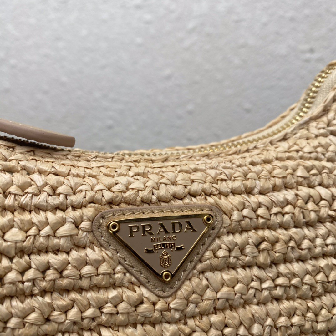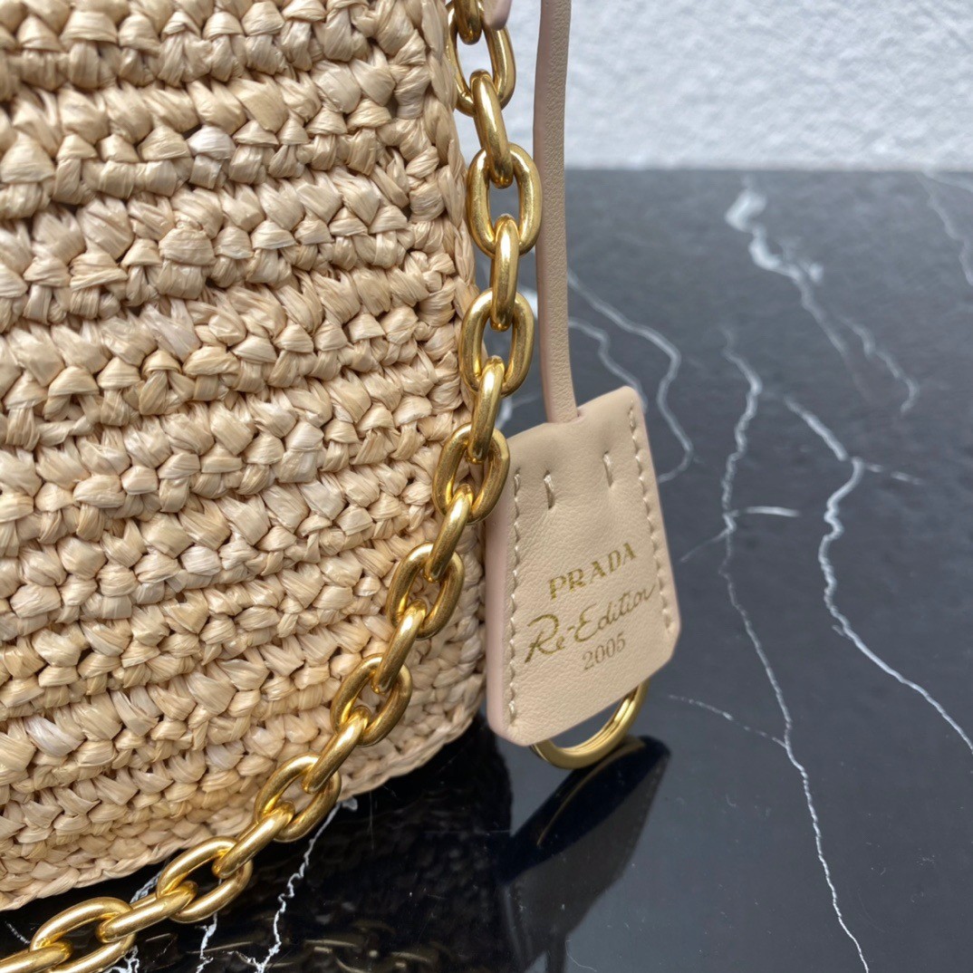 Prada Re-Edition 2005 Shoulder Bag In Beige Raffia