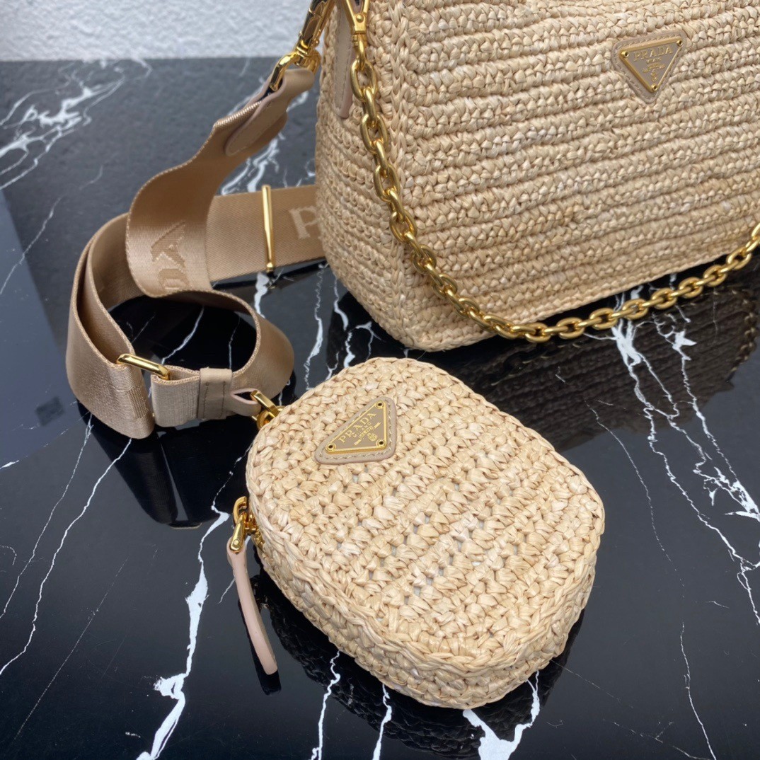 – Removable raffia zipper pouch and Re-Edition keychain