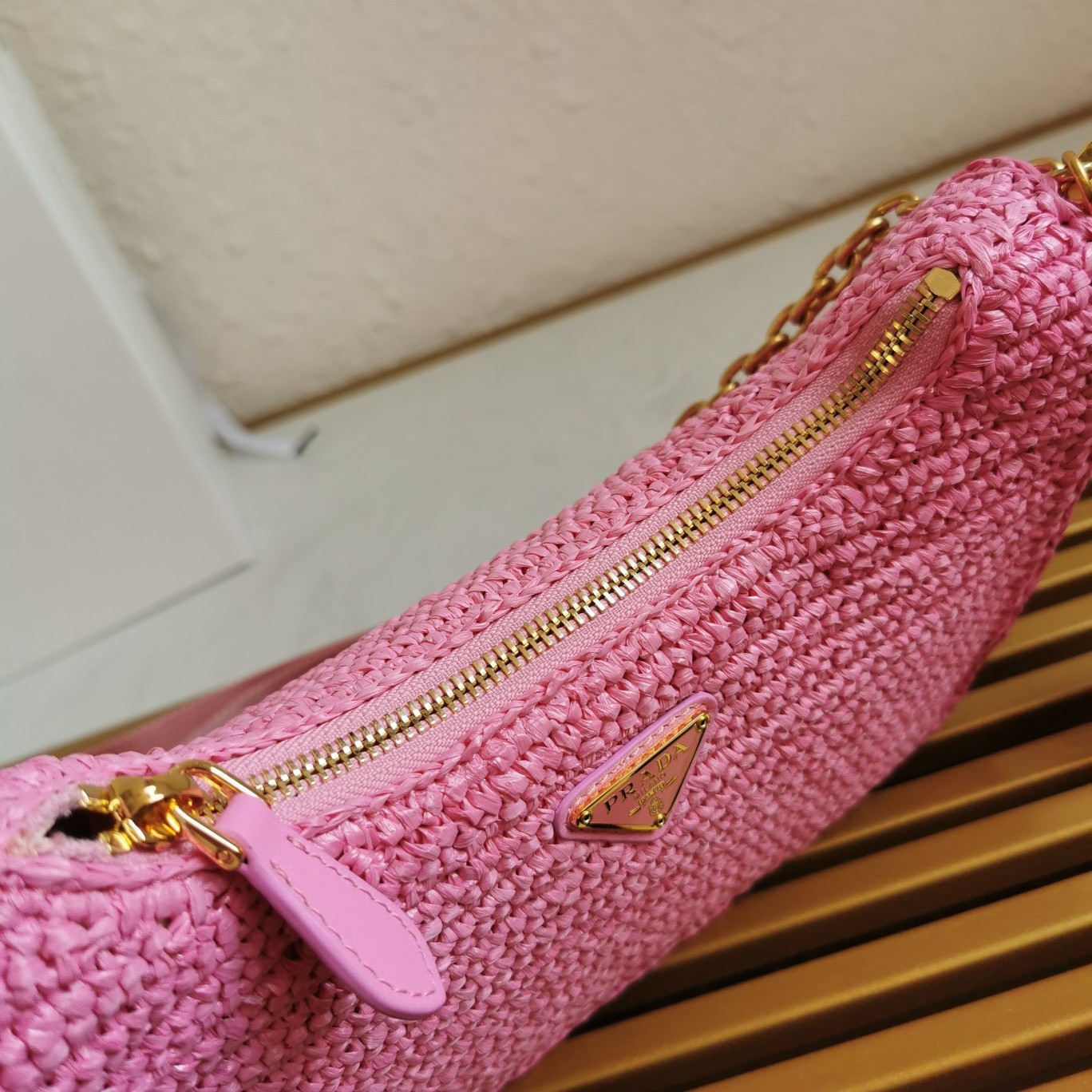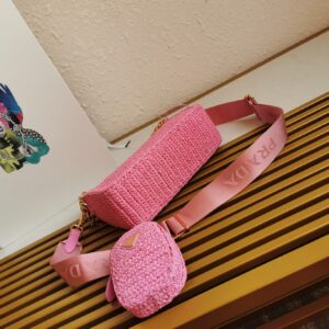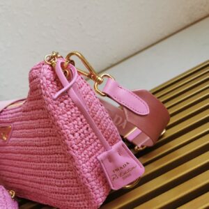 Prada Re-Edition 2005 Shoulder Bag In Pink Raffia