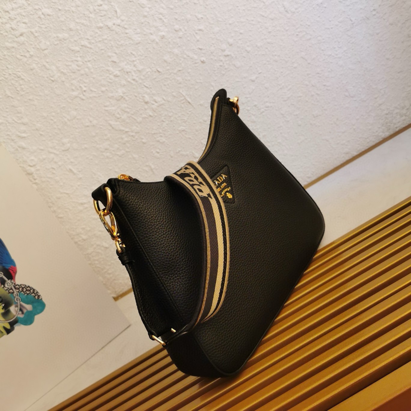 – Leather handle and detachable logo-print woven tape shoulder strap