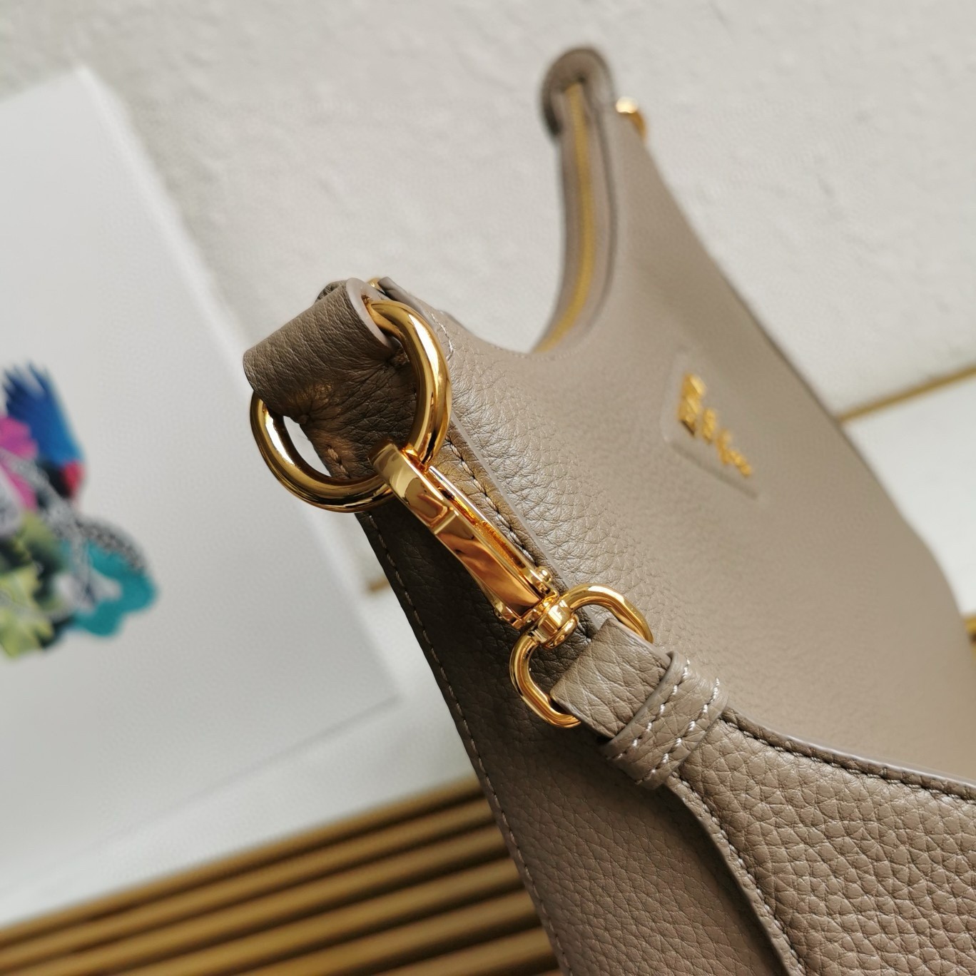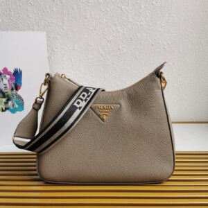 Prada Shoulder Bag in Grey Grained Leather