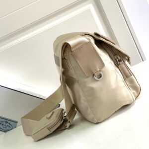 Prada Shoulder Bag with Flap in Beige Re-Nylon