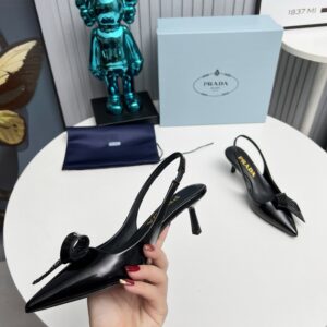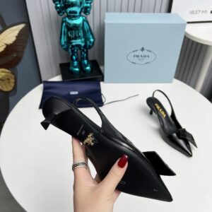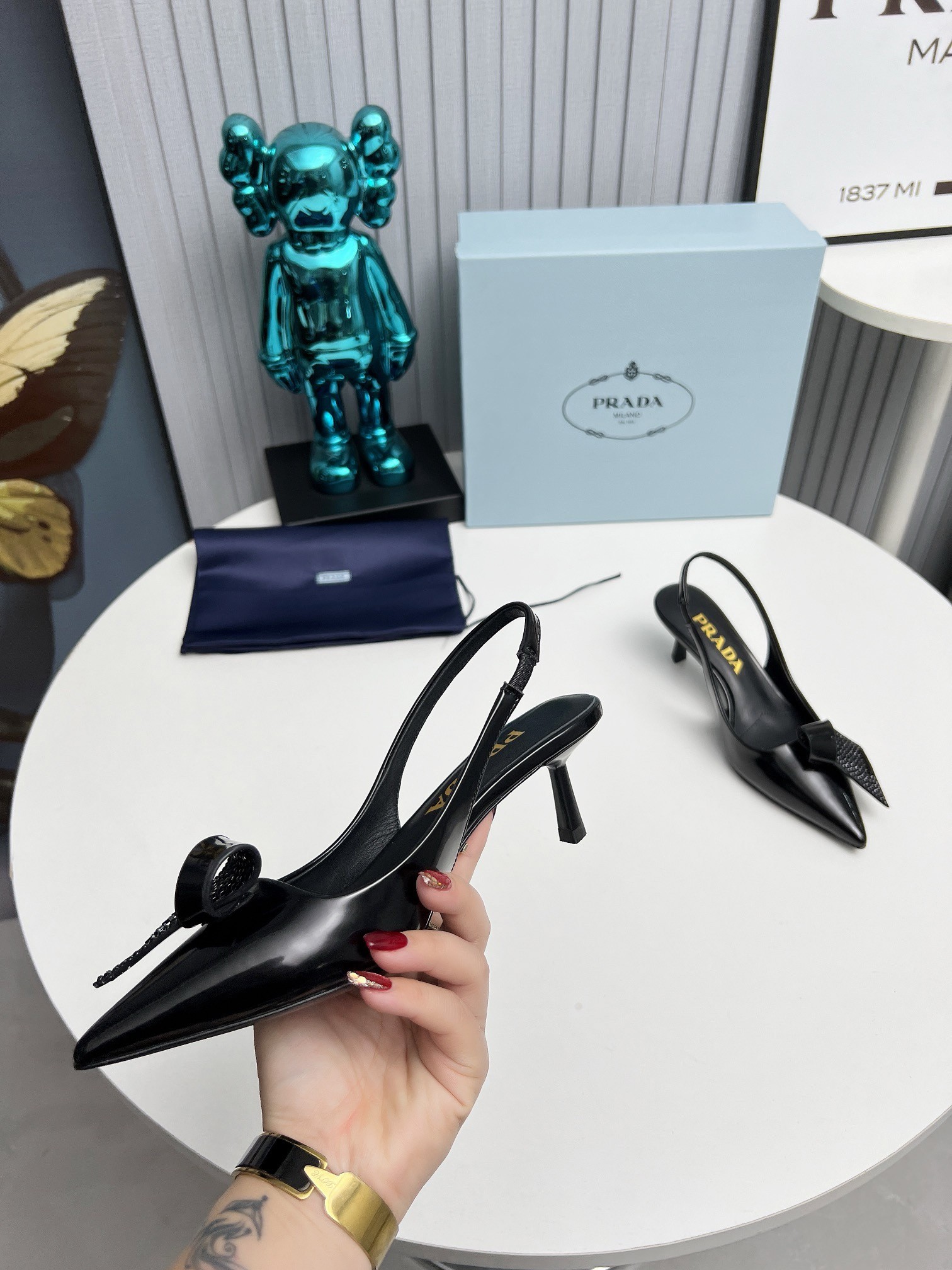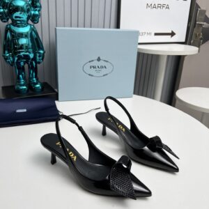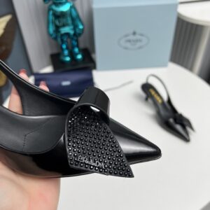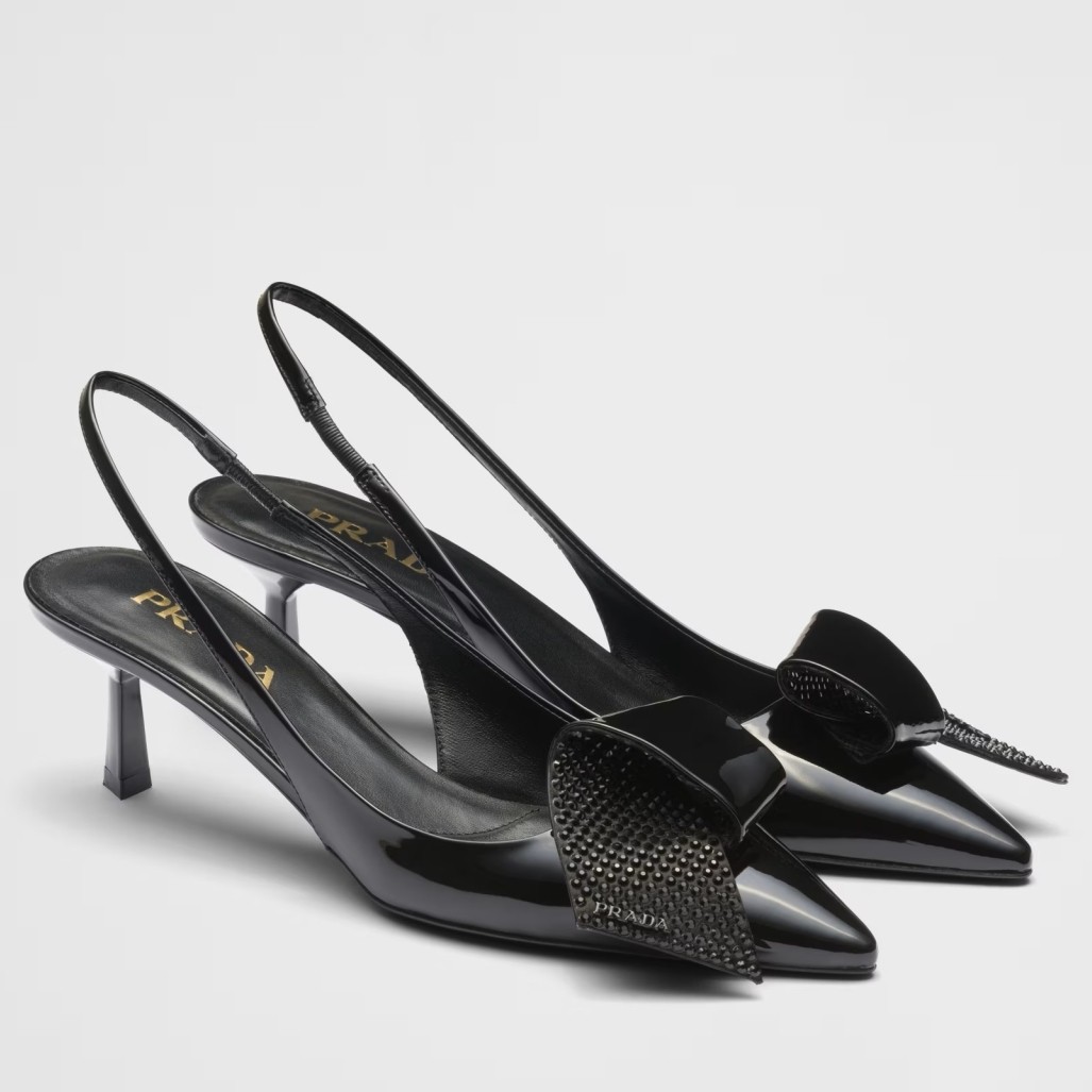 Prada Slingback Pumps 55mm in Black Patent with Crystals Ornament