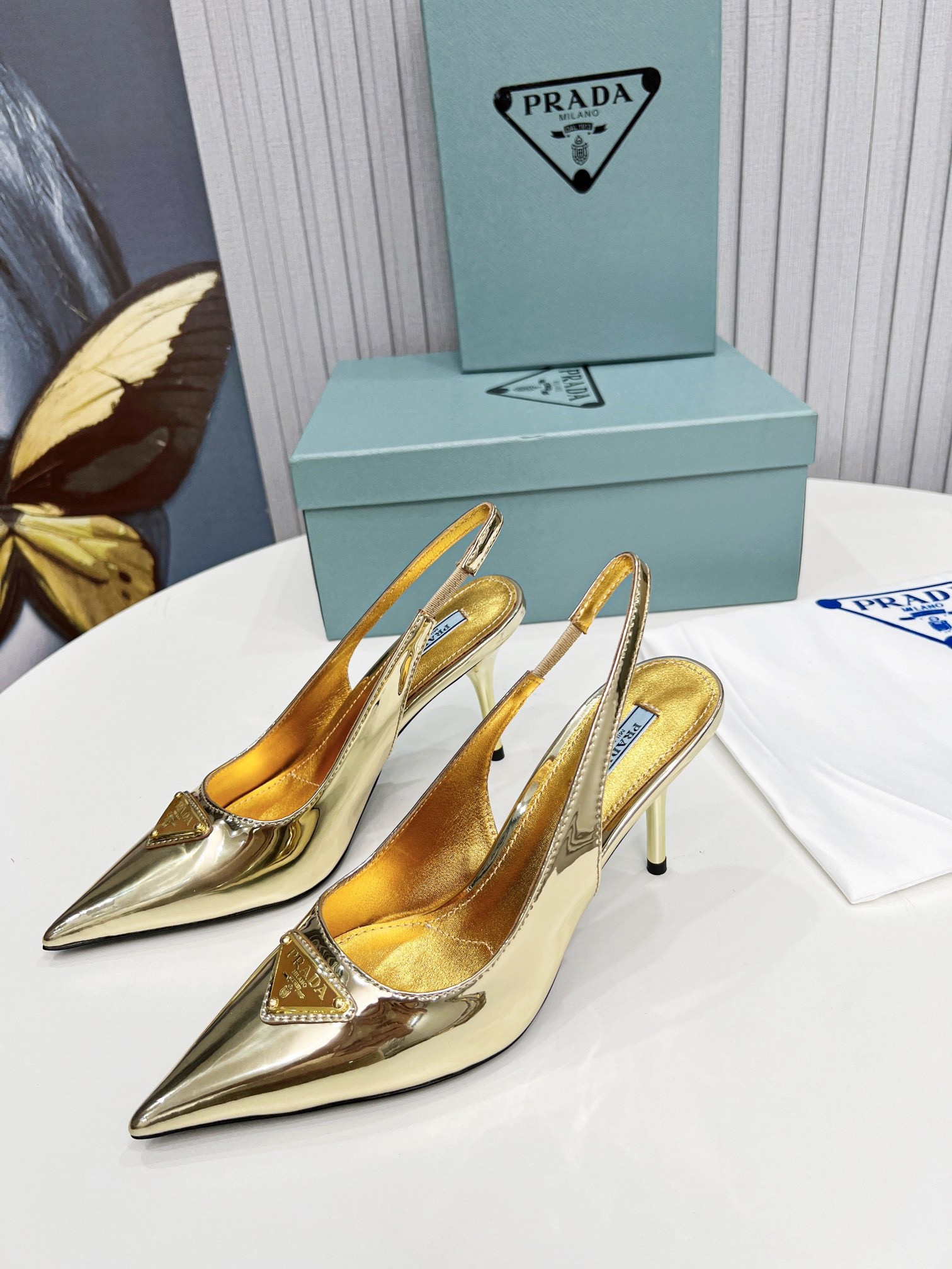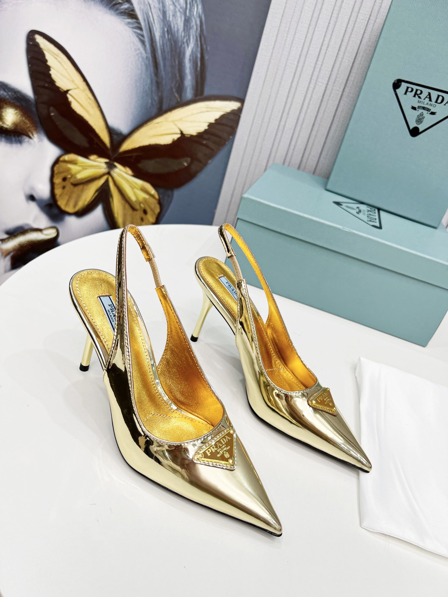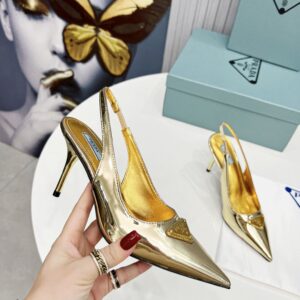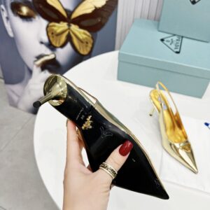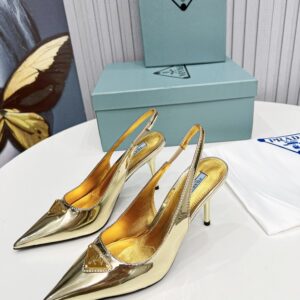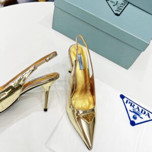 Prada Slingbacks Pumps 85mm In Gold Metallic Leather