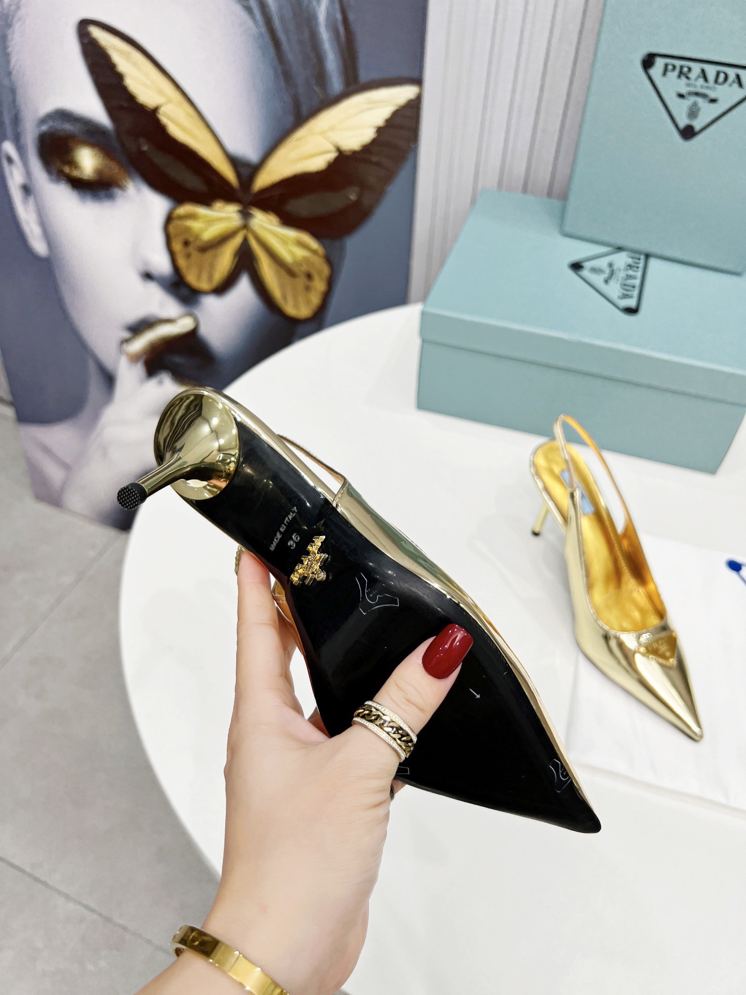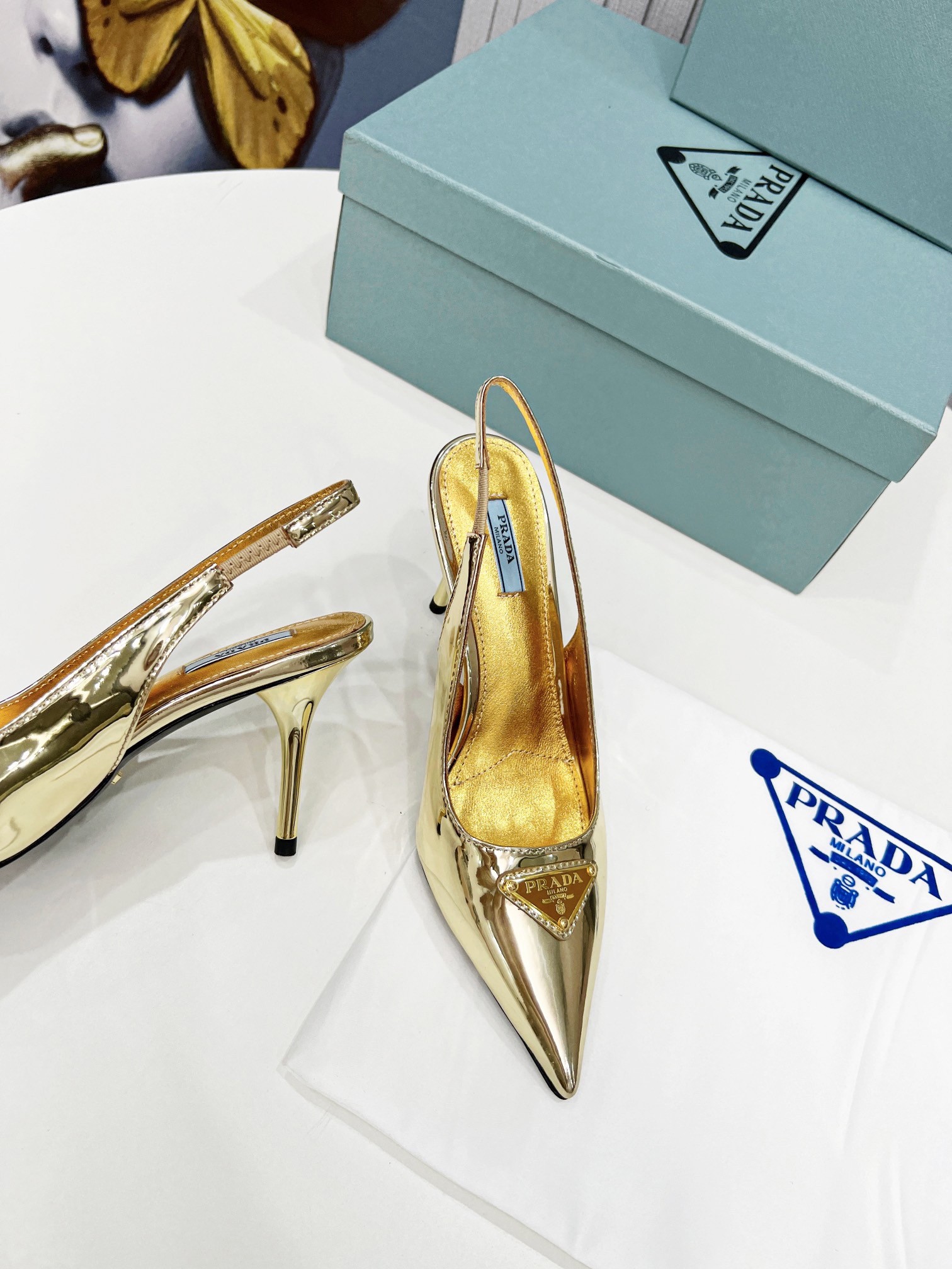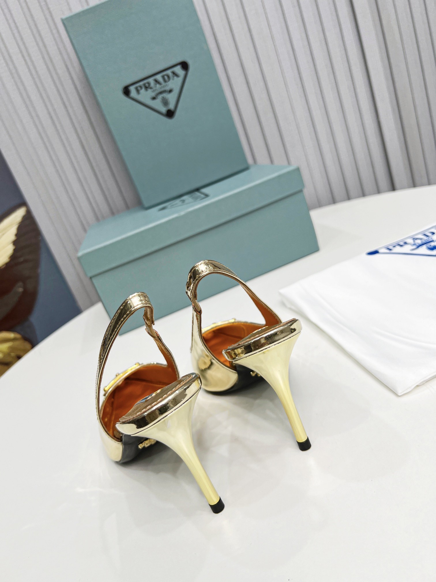 Prada Slingbacks Pumps 85mm In Gold Metallic Leather