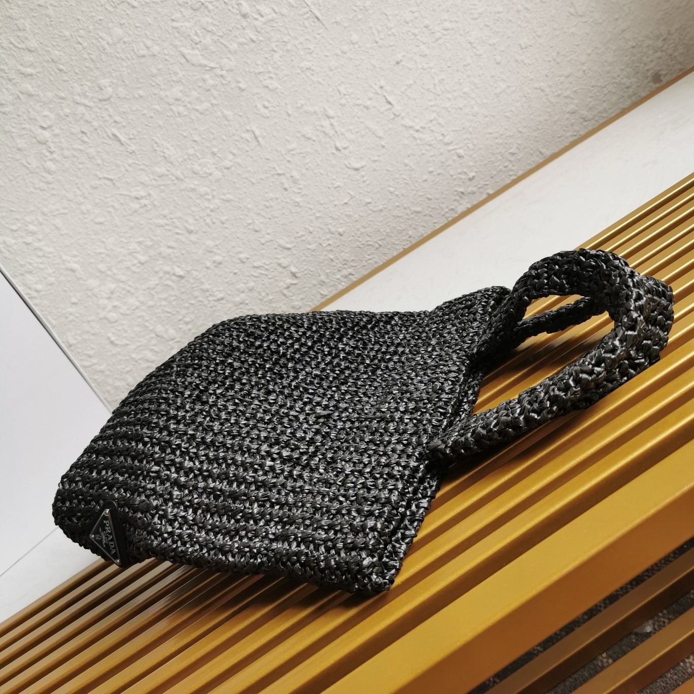 Prada Small Crochet Tote Bag in Black Raffia-effect Yarn