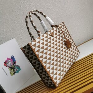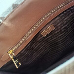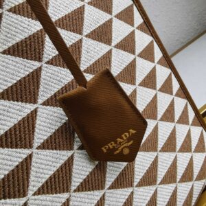 Prada Symbole Large Bag In White/Brown Jjacquard Fabric