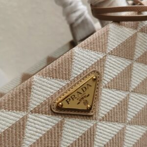 – Prada logo-print nylon lining with two pockets, one with zipper