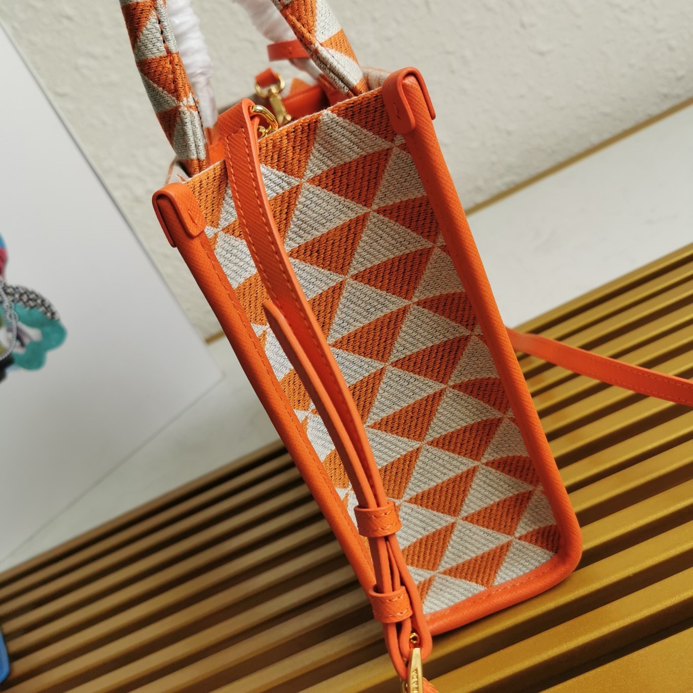Prada Symbole Small Bag in Orange and White Jacquard Fabric