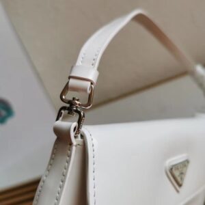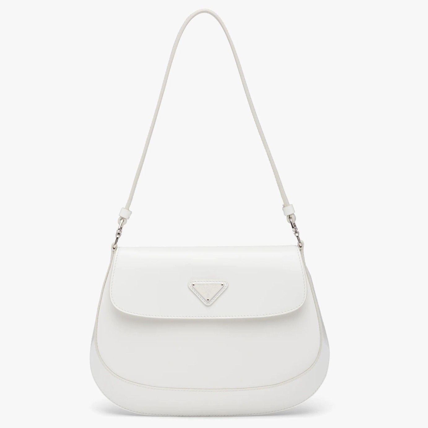 Prada White Brushed Leather Cleo Shoulder Bag with Flap