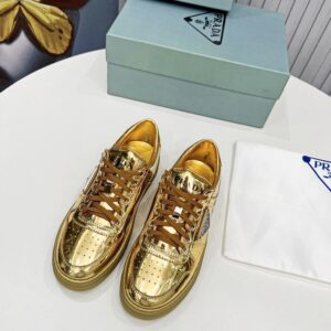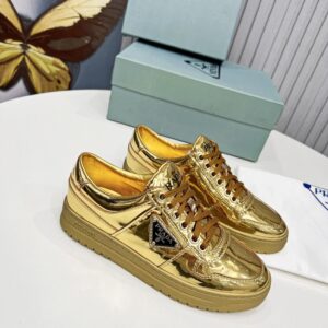 Prada Women’s Downtown Sneakers In Gold Metallic Leather