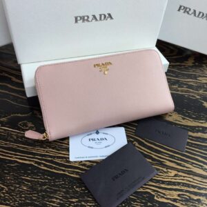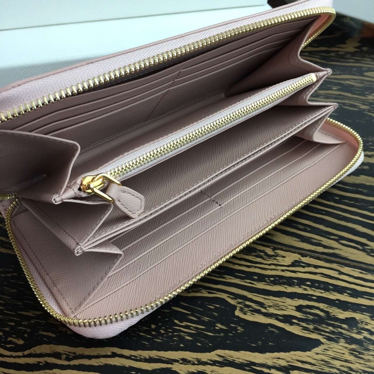 Prada Zipped Wallet In Light Pink Saffiano Leather