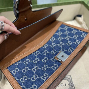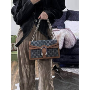 A message about leaving fashion’s old rules behind. the Epilogue collection conveys the idea that pieces should be timeless?Cnot just in fashion for one season. Among the designs are Alessandro Michele’s most emblematic styles and motifs from the past 5 years. like the Dionysus. One of the House’s Beloved lines. the bag is synonymous with its textured tiger head closure. Here. it appears as a small shoulder bag presented in organic GG jacquard denim.