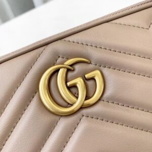 The GG Marmont mini chain bag has a softly structured slim shape and three zippered compartments. Made in matelasse leather with a chevron design and metal Double G detail.
