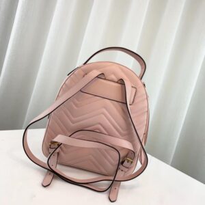 The GG Marmont backpack has a softly structured shape and Double G hardware. inspired by an archival design. The double zip leather pulls are exaggerated and add an unexpected touch. Made in soft matelasse chevron quilted leather.