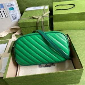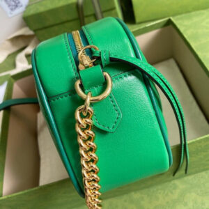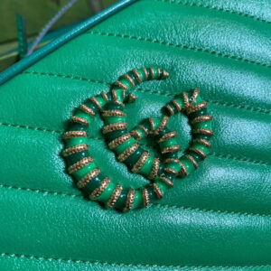Reminiscent of precious emeralds. the GG Marmont bag is introduced in complementary shades of green leather. The Double G hardware. a signature feature of the line. is enriched with colorful enamel. The rectangular style is completed by a chain shoulder strap. allowing the accessory to be carried crossbody or on the shoulder.