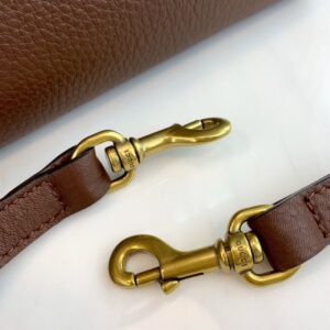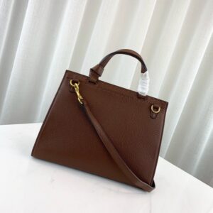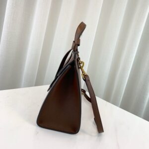 A small structured leather top handle with top-stitching detail. Made in our signature lightweight leather. noted for its softness and elasticity.